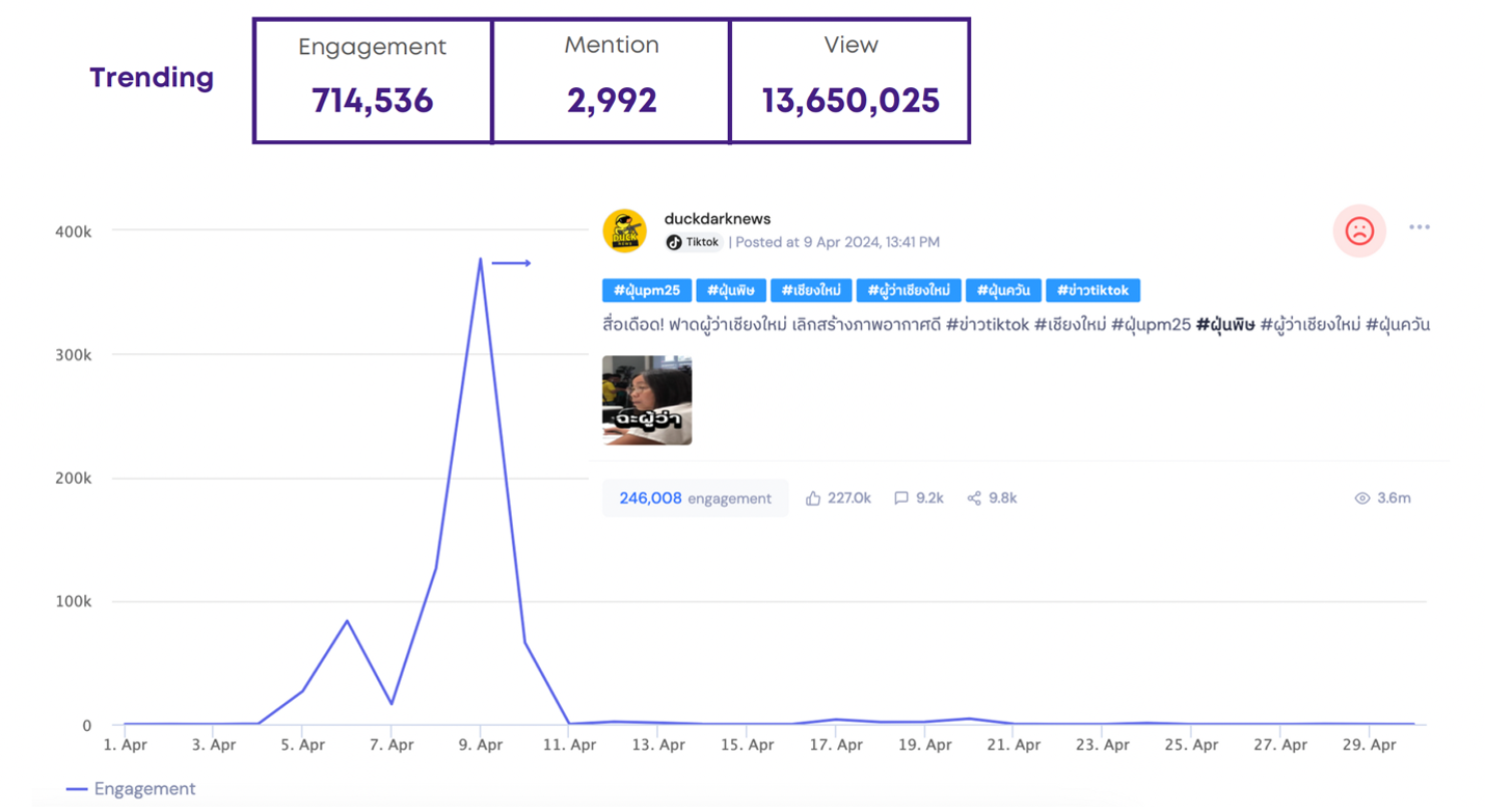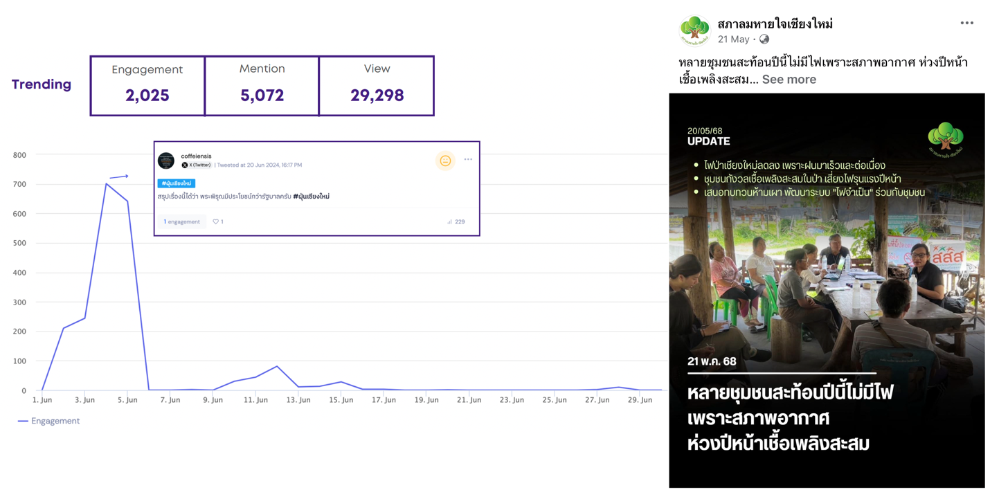 อนึ่ง ข้อสังเกตสำคัญคือ บทบาทของสื่อหลักยังคงสูงต่อการมีอิทธิพลต่อความคิดเห็นสาธารณะ โดย Engagement ส่วนใหญ่เชื่อมโยงกับการนำเสนอข่าวของสื่อ ในขณะที่ท่าทีของภาครัฐต่อสื่อส่งผลต่ออารมณ์ความรู้สึกสาธารณะที่มีต่อสถานการณ์และมาตรการการรับมือ PM2.5 ไม่น้อยไปกว่าการบรรลุหรือไม่บรรลุตัวชี้วัด ซึ่งสะท้อนว่าการขับเคลื่อนนโยบายต้องดำเนินการคู่ขนานกับการสื่อสารสาธารณะที่มีประสิทธิภาพ เป็นมิตร และสร้างสรรค์ (การสื่อสารเชิงบวกที่ไม่ปกปิด) โดยคำนึงถึงมุมมองของสังคมคู่ขนานกับค่าเป้าหมายที่ต้องการบรรลุ