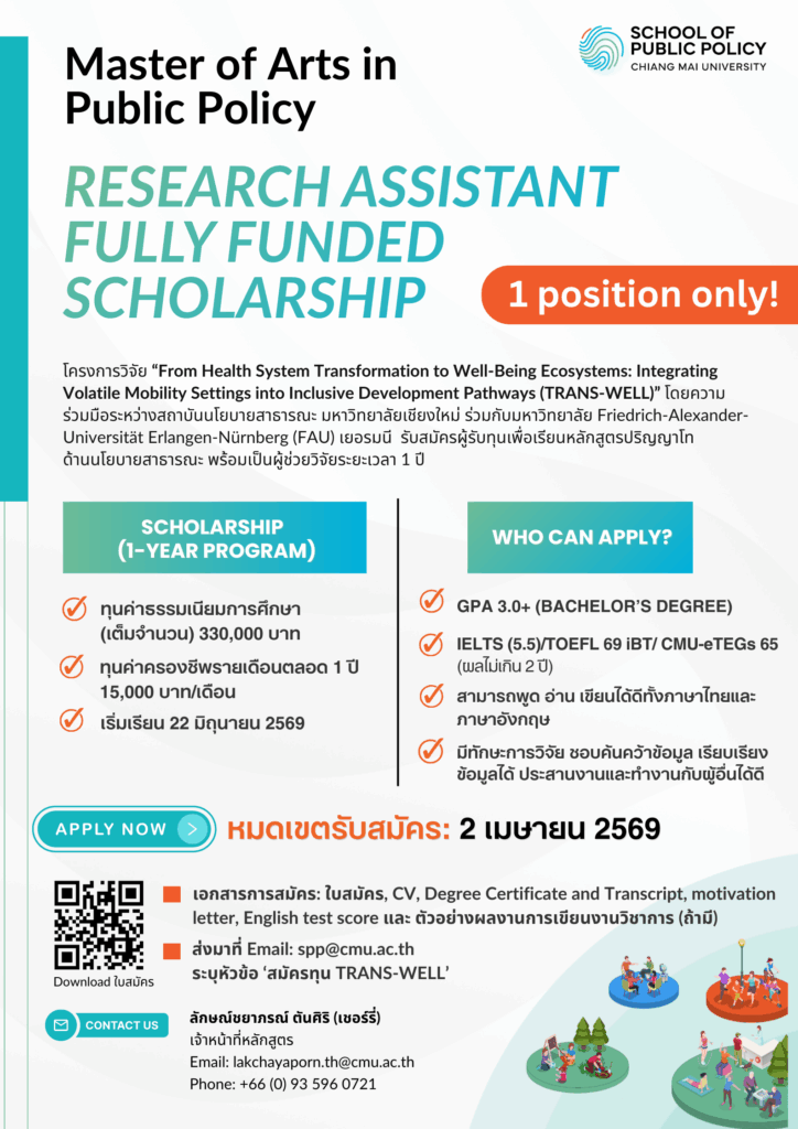 āđāļāļĢāļāļāļēāļĢāļ§āļīāļāļąāļĒ âFrom Health System Transformation to Well-Being Ecosystems: Integrating Volatile Mobility Settings into Inclusive Development Pathways (TRANS-WELL)â āđāļāļĒāļāļ§āļēāļĄāļĢāđāļ§āļĄāļĄāļ·āļāļĢāļ°āļŦāļ§āđāļēāļāļŠāļāļēāļāļąāļāļāđāļĒāļāļēāļĒāļŠāļēāļāļēāļĢāļāļ° āļĄāļŦāļēāļ§āļīāļāļĒāļēāļĨāļąāļĒāđāļāļĩāļĒāļāđāļŦāļĄāđ āļĢāđāļ§āļĄāļāļąāļāļĄāļŦāļēāļ§āļīāļāļĒāļēāļĨāļąāļĒ Friedrich-Alexander-UniversitÃĪt Erlangen-NÞrnberg (FAU) āđāļĒāļāļĢāļĄāļāļĩ