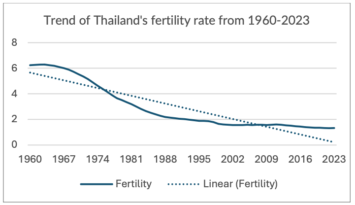 Figure 2:Trend of Thailand’s Fertility Rate from 1960-2023